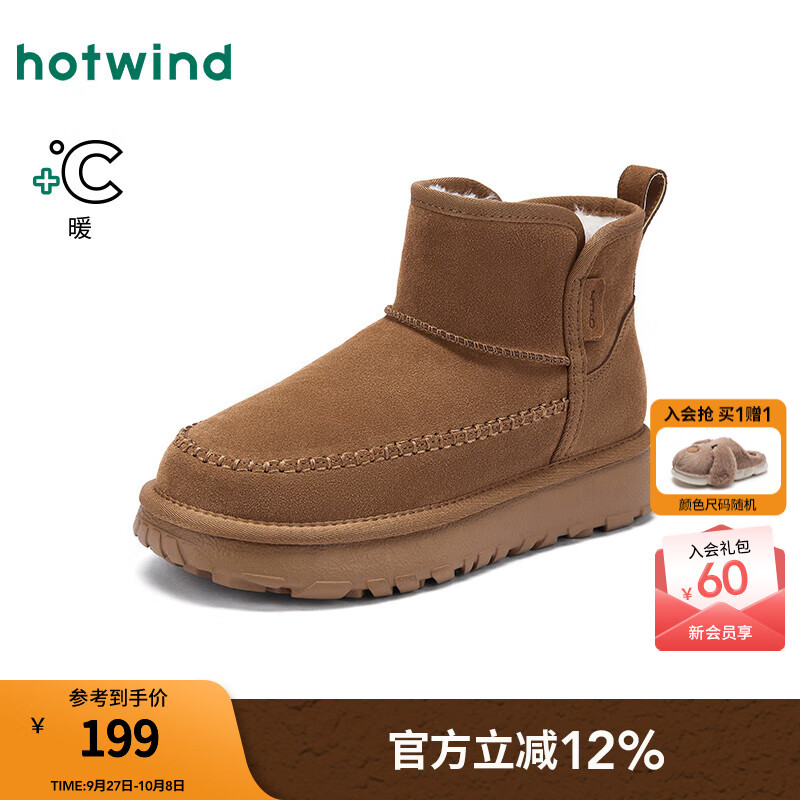 热风男鞋2025年秋季新款男士时尚靴子短筒加绒雪地靴户外保暖棉鞋 08杏色 42