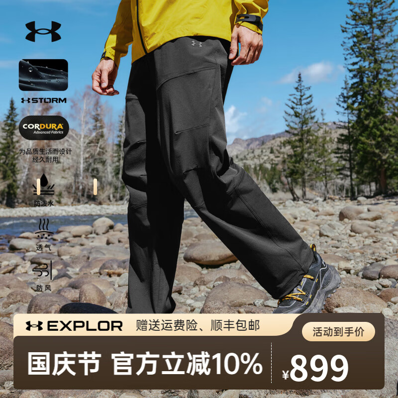 安德玛【谢霆锋同款】户外软壳裤男女防泼水防风 休闲透气长裤运动徒步 漫暮黑 L