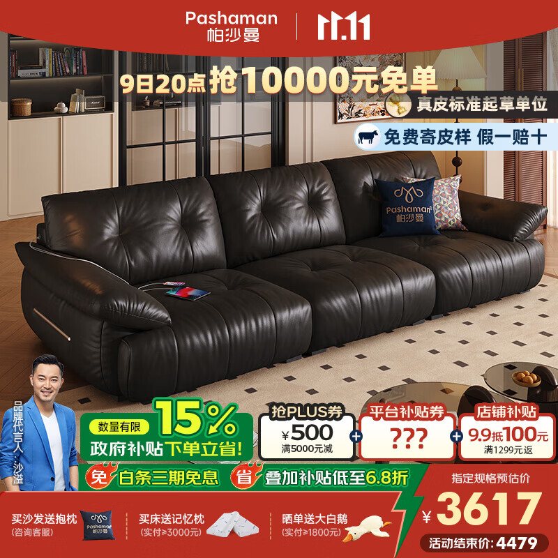 帕沙曼真皮沙发2025新款复古风客厅直排云朵黑色皮家具大坐深意式2639ZP 【无功能】2.8米多人位 【旗舰版 l 头层S++级青皮NS】