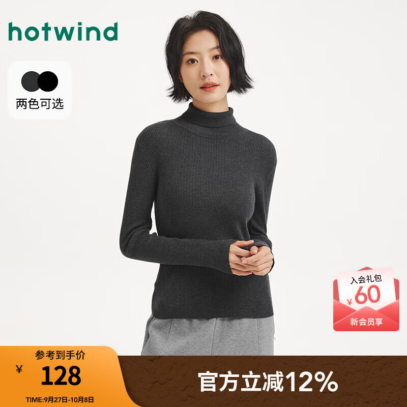 热风(Hotwind)【商场同款】女士打底衫针织上衣2025年冬季新款高领打底针织衫 09灰色 M