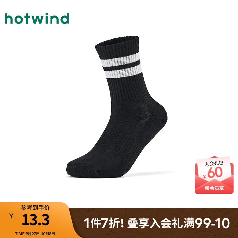 热风(Hotwind)【商场同款】男袜子2025年秋季新款条纹运动中帮袜撞色中筒袜 01黑色 均码