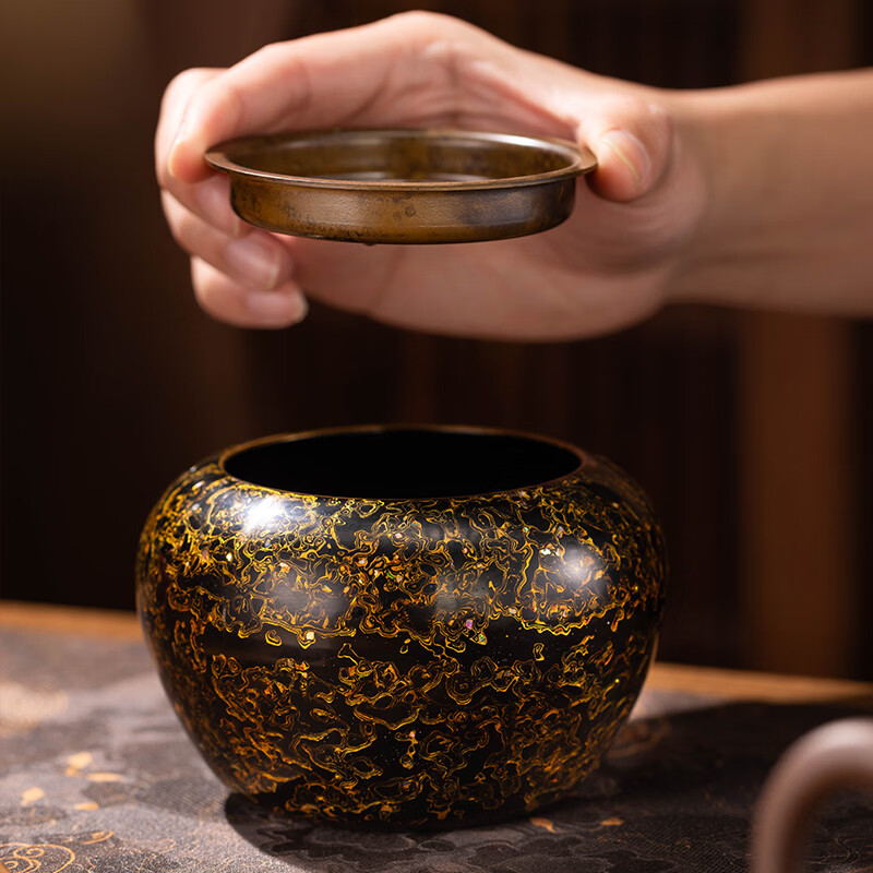 朱炳仁铜 福运金耀大漆建水 客厅书房办公室职场桌面铜建水家居日用 福运金耀大漆建水-玄黑