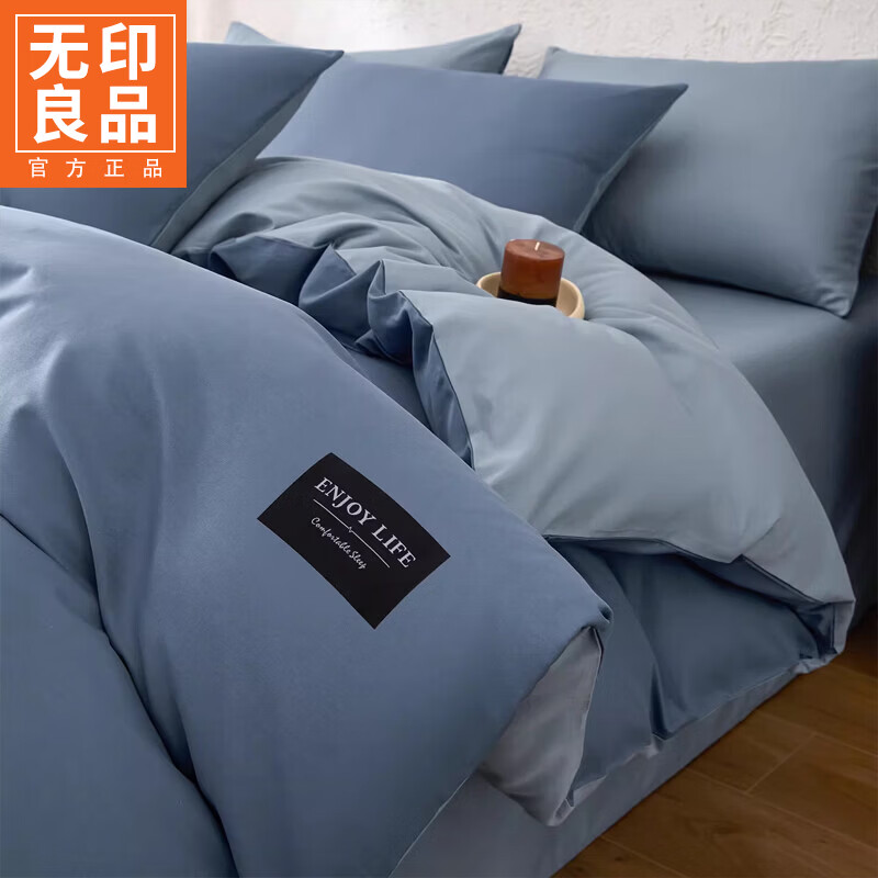 无印良品甄选新疆纯棉单独被套150x200cm全棉单人被罩200x230cm单件四件套 宾利蓝+海青蓝 【亲肤透气 细腻柔软】 180cm*220cm 单被套