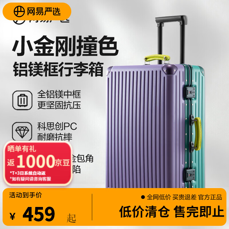 网易严选26新品小金刚流光之径铝框拉杆箱行李箱多功能旅行箱万向轮 藤萝紫-春夏限定色 24英寸 (需托运)