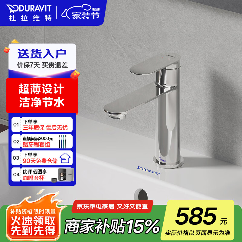 DURAVIT(杜拉维特)面盆水龙头 厨房水龙头 卫生间洗手洗脸盆冷热龙头 BZ1020 【不带提拉】银质镀铬