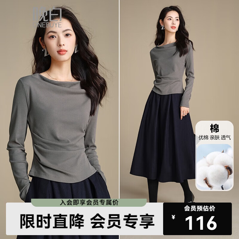晚白2026春款内搭可外穿叠穿荡领上衣气质温柔百搭棉质打底衫女 灰色 M