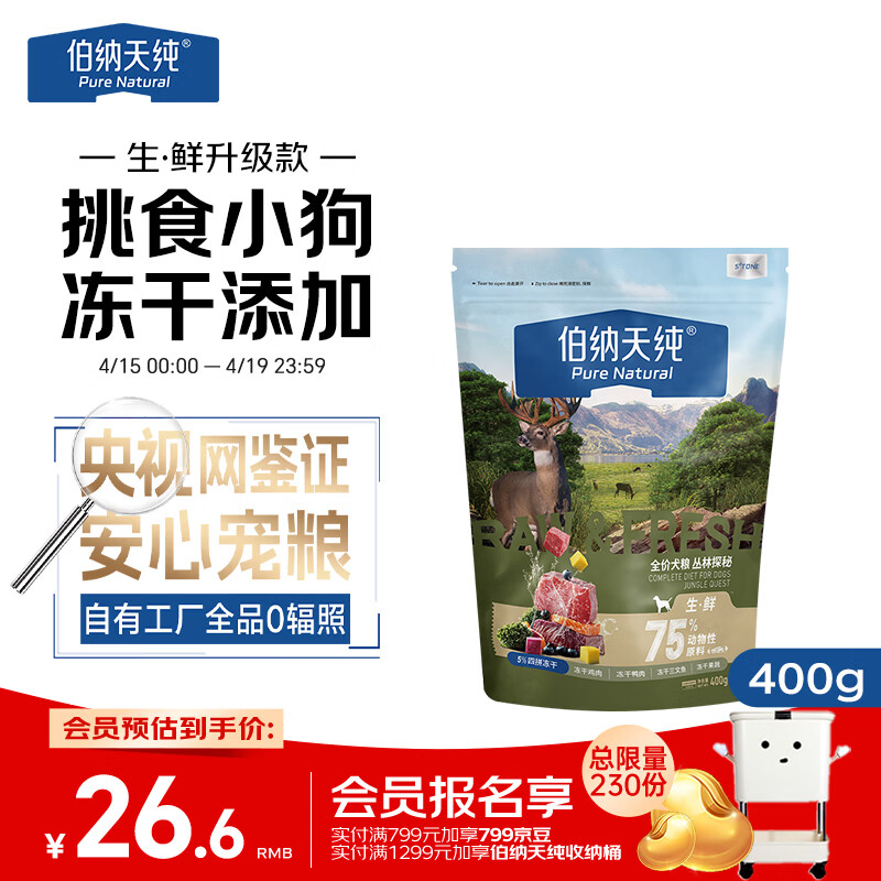 伯纳天纯生·鲜系列Ultra全价犬粮丛林探秘400g/包