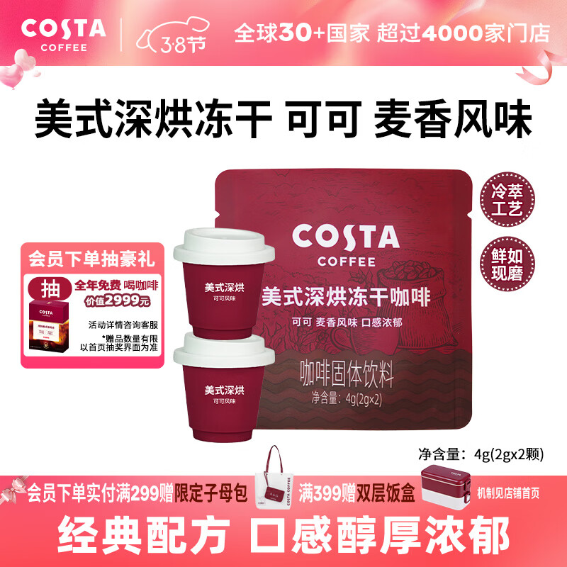 COSTA冻干速溶黑咖啡粉美式深烘可可麦香风味口感浓郁2g*2颗【尝鲜装】