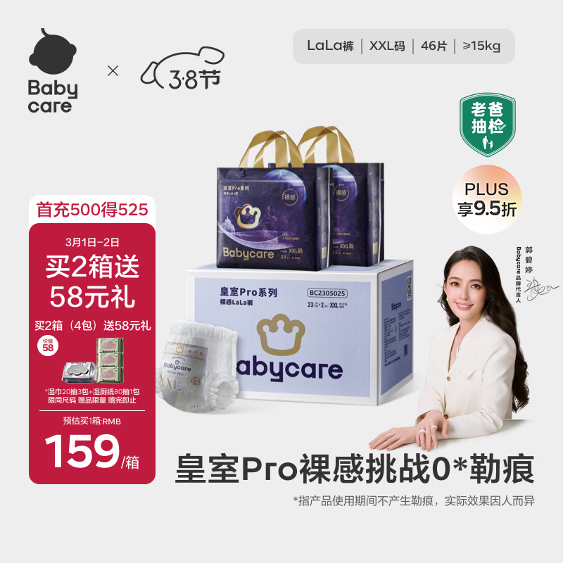 babycare皇室pro裸感拉拉裤箱装XXL23片*2包(>15kg)婴儿尿不湿透气