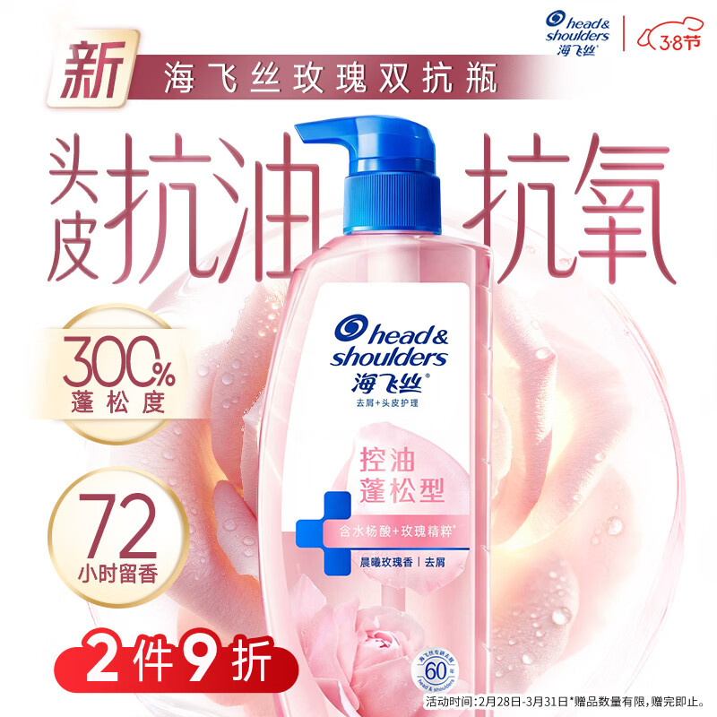 海飞丝玫瑰双抗洗发水670g控油蓬松香氛去屑男女士水杨酸洗头膏头皮肌底
