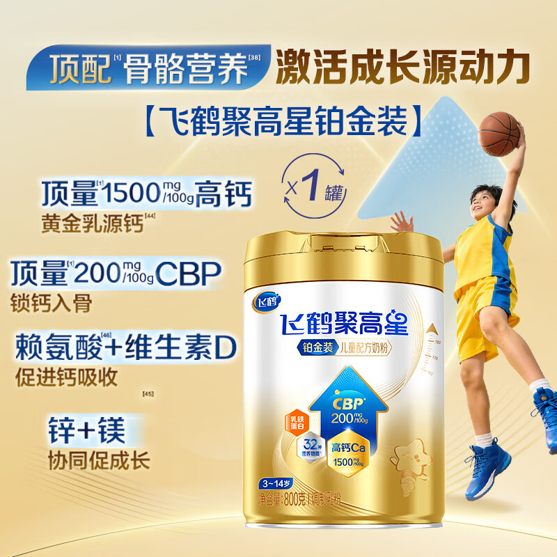 飞鹤聚高星铂金CBP骨骼发育乳铁蛋白儿童成长奶粉4段(3-14岁)800g*1罐