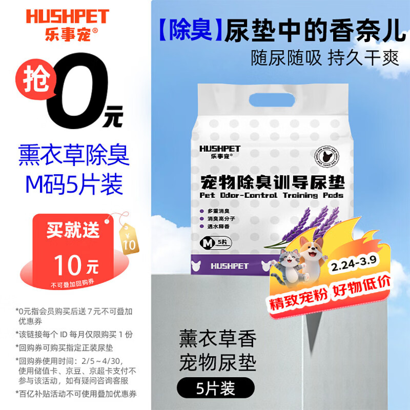 乐事宠薰衣草香宠物尿垫狗狗隔尿垫背贴狗狗尿垫除臭吸水垫京东自营M码