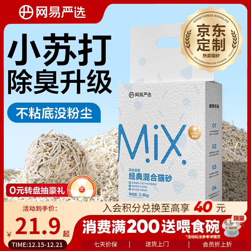网易严选豆腐膨润土混合猫砂强结团省砂不沾底小苏打除臭砂 4.8斤
