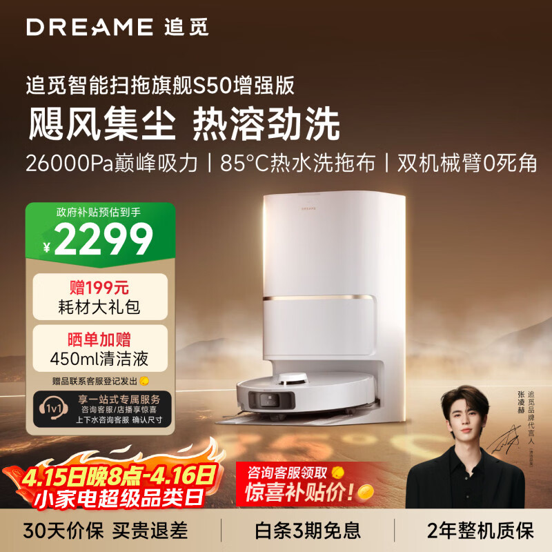 追觅S50增强版扫地机器人扫地洗地机吸洗拖扫拖一体自动清洗全自动水箱版RLS88HE