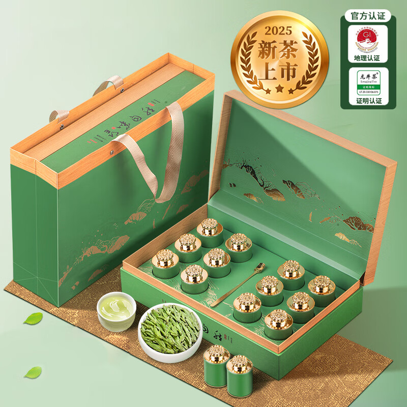 至鼎 绿茶 特级龙井茶 2025新茶 浓香豆香明前春茶 高端送礼礼盒120g