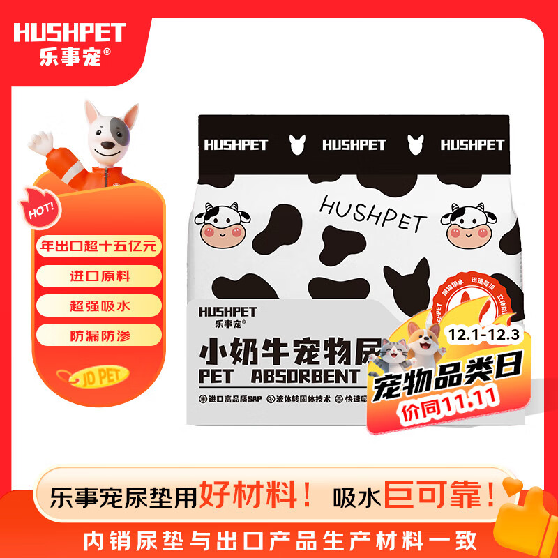 乐事宠尿垫小奶牛系列隔尿垫宠物尿垫狗狗京东自营竹炭除臭吸水垫M/单片