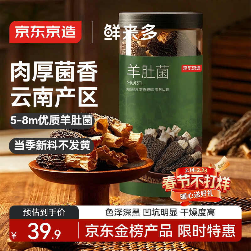 京东京造 鲜来多厚羊肚菌50g 云南高山5-7cm 去柄去泥煲汤火锅年货