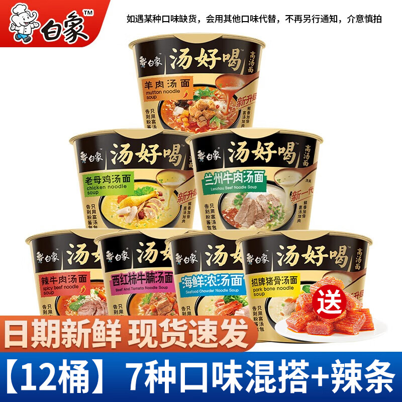 白象方便面汤好喝桶面桶装整箱7口味混搭速食泡面批发免煮速食 【12桶整箱】辣牛+鸡汤