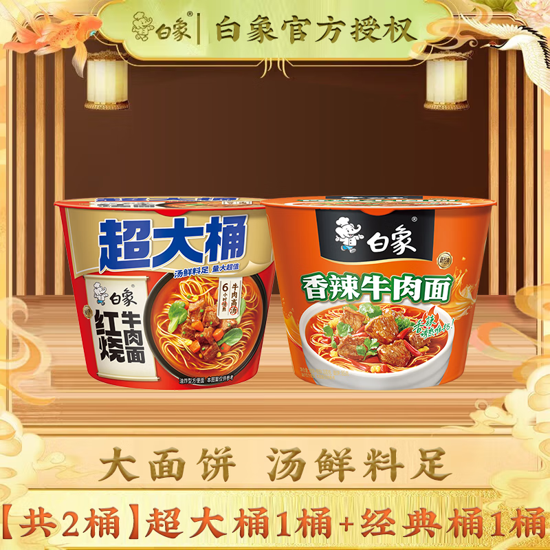 白象方便面经典整箱桶面速食面条免煮速食泡面桶装超大桶经典桶组合装 【共2桶】超大桶1桶+经典桶1桶