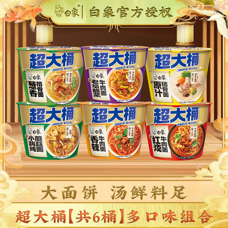 白象方便面经典整箱桶面速食面条免煮速食泡面桶装超大桶经典桶组合装 【共6桶】超大桶 多口味组合