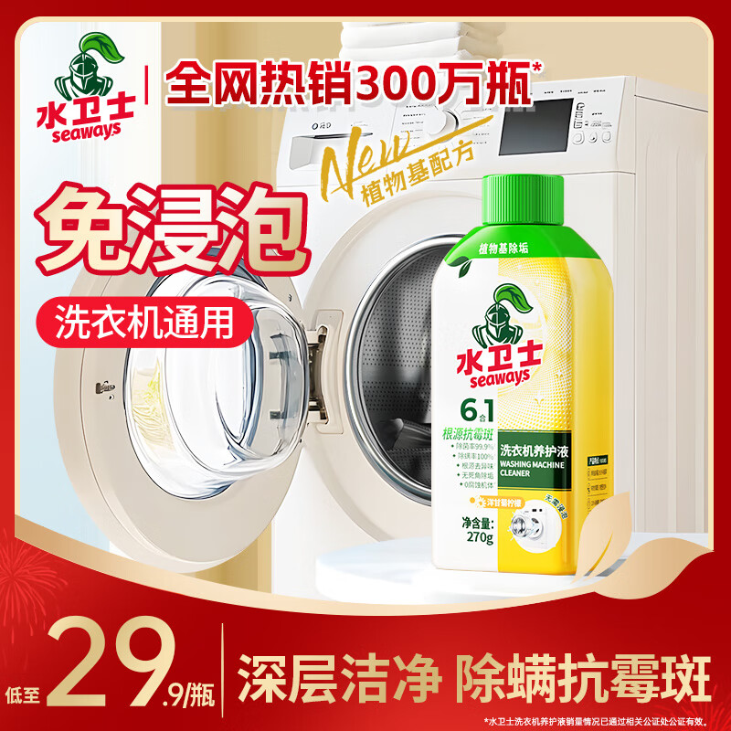 水卫士洗衣机清洗剂270g滚筒波轮洗衣机清洁剂免浸泡除垢除菌去异味防霉 洗衣机清洁液270g*1【6合1】