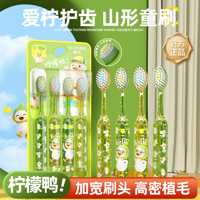 QUEENBEE【水晶柠檬鸭】儿童螺旋软毛牙刷软毛护龈柔棉3-12岁男女孩 【柠檬鸭水晶牙刷】*4支