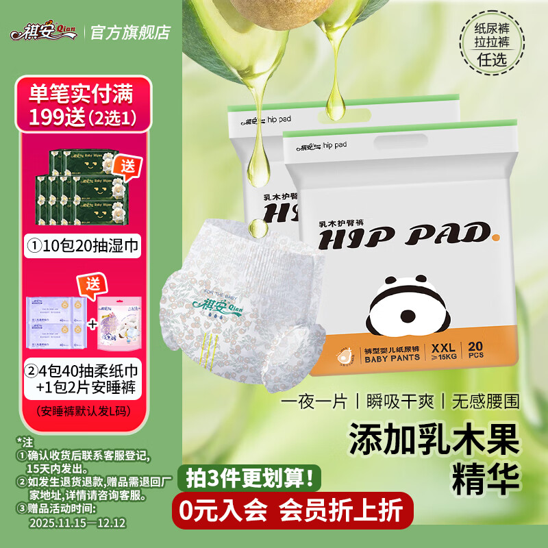 祺安T2熊猫乳木果油宝宝护臀系列柔润透气纸尿裤拉拉裤男女通用尿不湿 2包发货拉拉裤XXL码 共40片【更优惠】