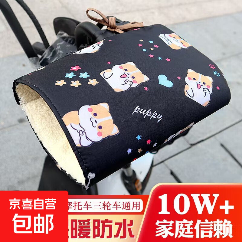 电动车手把套冬季保暖防水电瓶摩托车手套挡风加厚加绒防雨棉护手 黑比芯萌犬