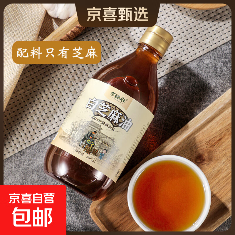 纯白芝麻油100%纯芝麻支取火锅蘸料拌菜家用芝麻香油500ml 古鲜农纯白芝麻香油500毫升*1玻璃瓶