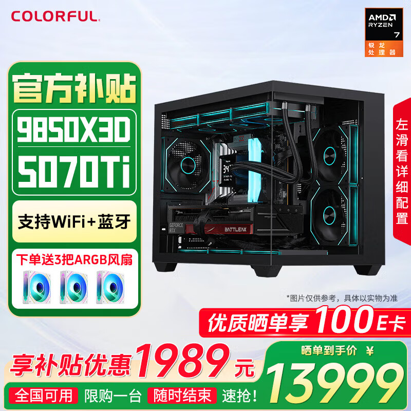 七彩虹RTX5080 5070 Ti主机AMD锐龙9800x3d台式diy组装电脑AI设计电竞游戏整机 配三:9850X3D RTX5070Ti 主机