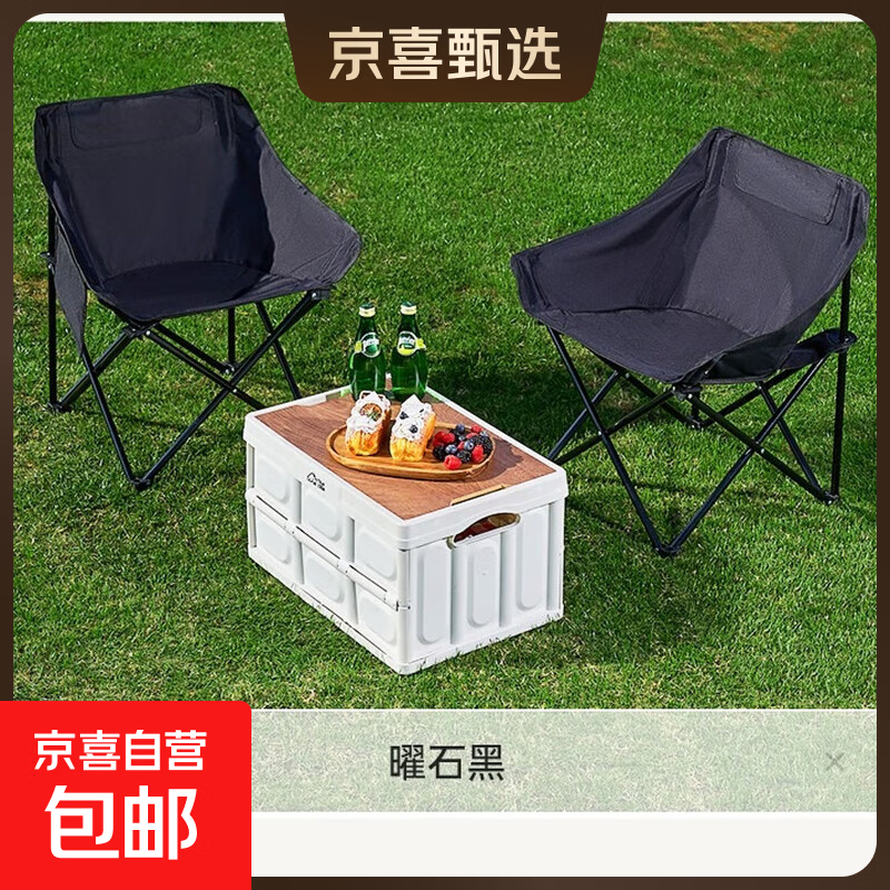 折叠椅户外露营便携靠背钓鱼椅懒人椅家庭休闲月亮椅躺椅 低背款月亮椅-黑色