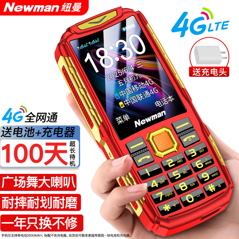 纽曼(Newman)N66新款三防老年全语音王学生直板按键老年机4G全网通手机超长待机老人机大屏大字大声音红色