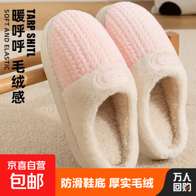 2025新款冬季家居鞋双拼色棉拖鞋防滑厚底情侣家居鞋家居棉拖 字母棉拖-粉色 44-45 适合43-44