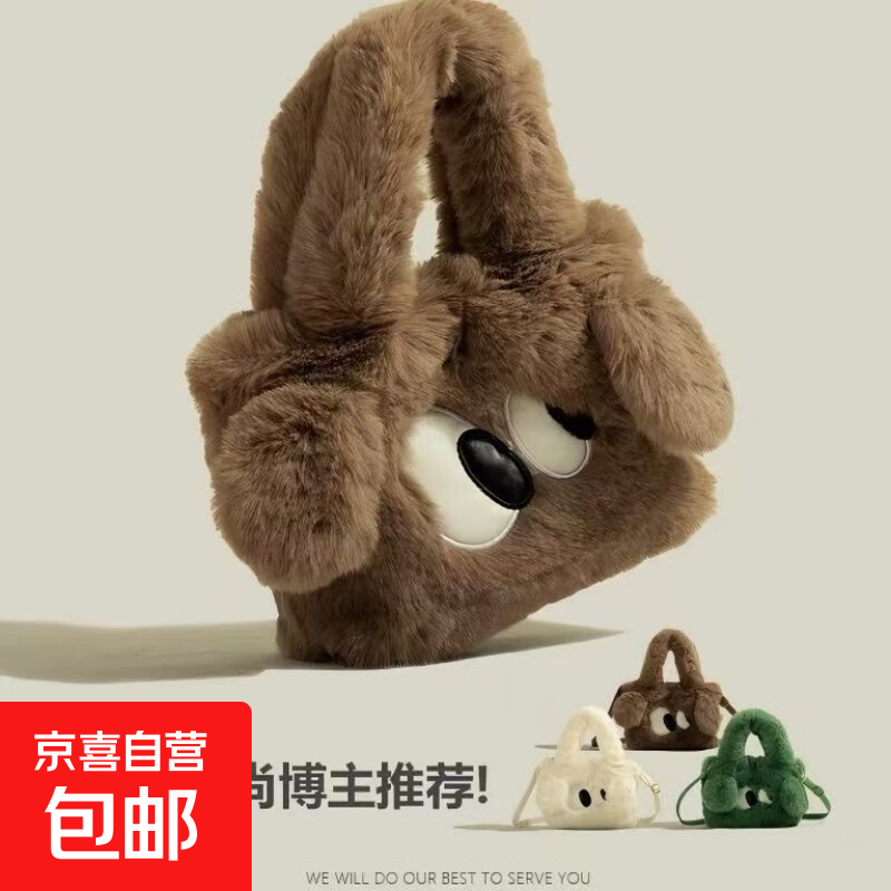 【秋冬必备】毛绒手提包秋冬款斜挎包高颜值可爱大眼狗少女收纳包 深棕色 21.5*14.5*8cm 大眼毛绒包+肩带 1个