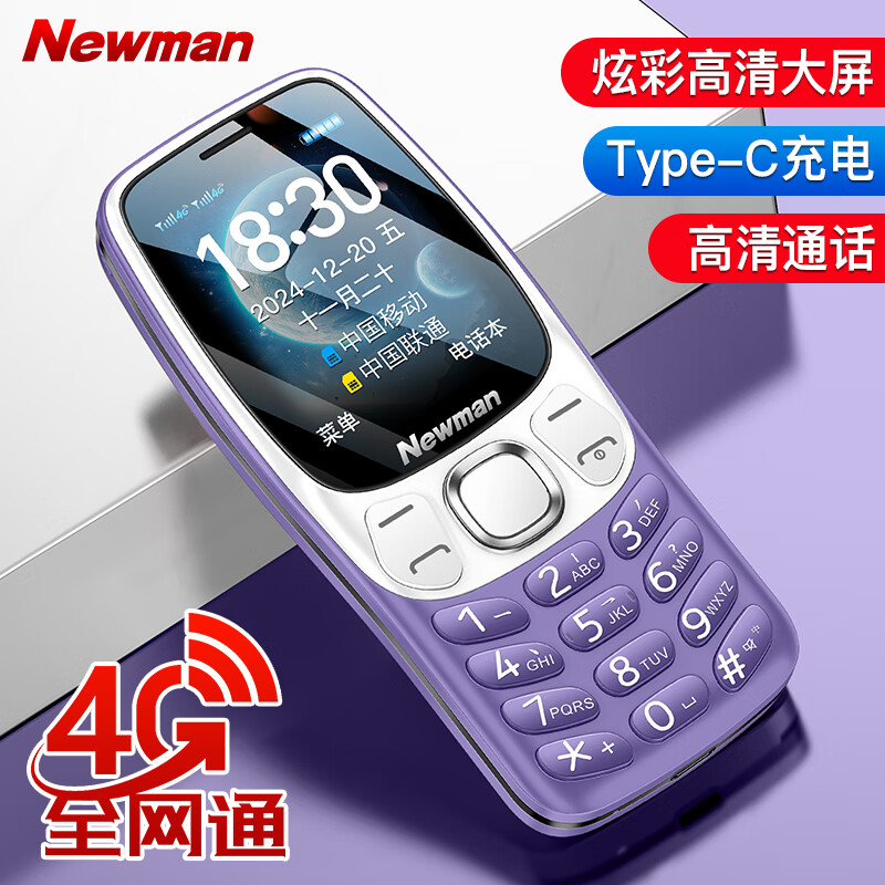纽曼(Newman)N105全网通4G老人手机超长待机大屏大字大声老年机移动联通电信版男女士学生紫色