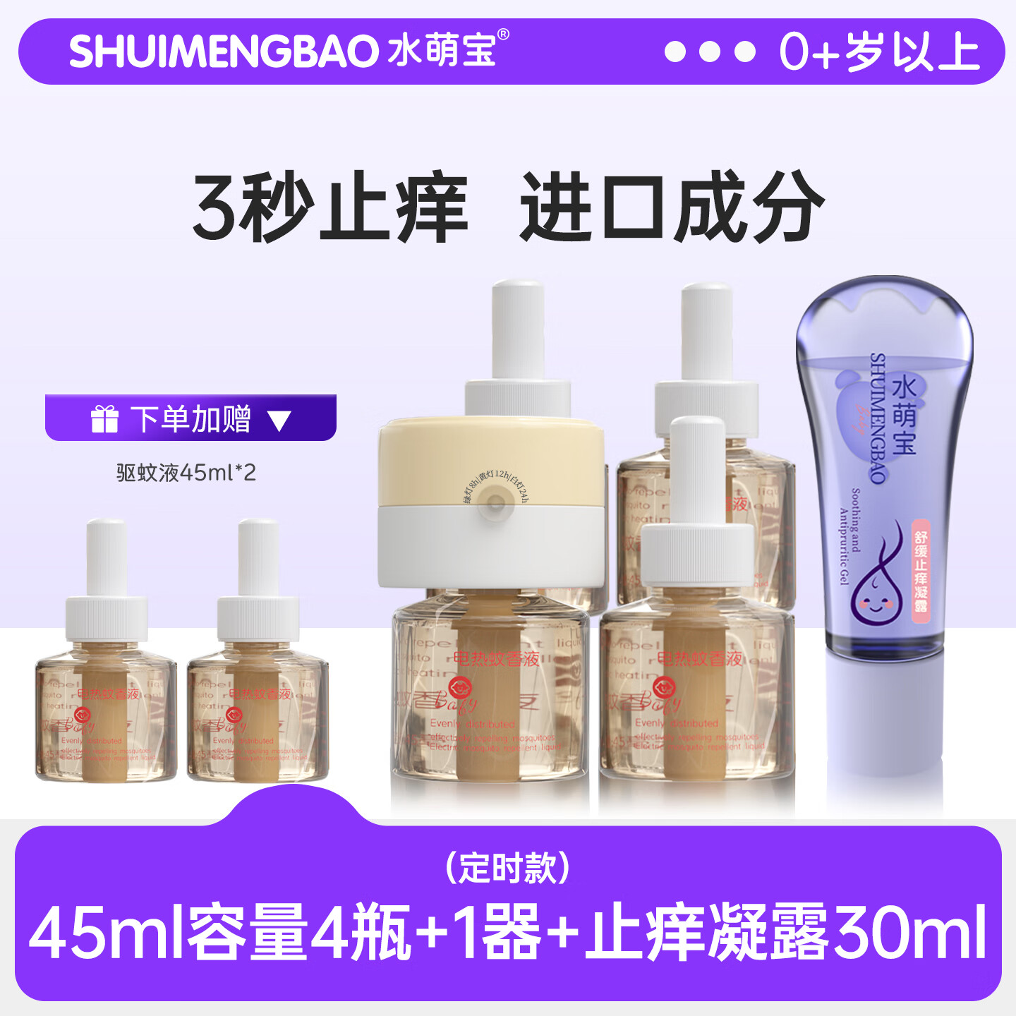 水萌宝电热蚊香液驱蚊套装无味无烟无味插电家用灭蚊驱蚊液 【定时智能款】4液+1器+舒缓止痒凝露30ml