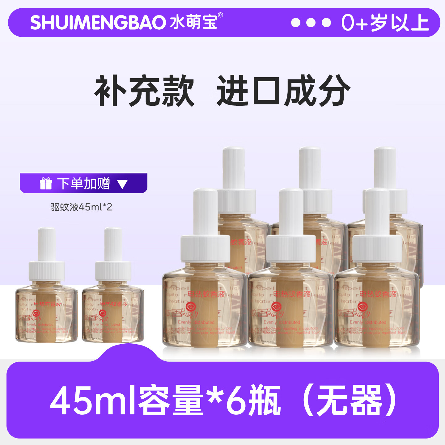 水萌宝电热蚊香液驱蚊套装无味无烟无味插电家用灭蚊驱蚊液 【无烟无味】6瓶液(拍1发8液)(无器)