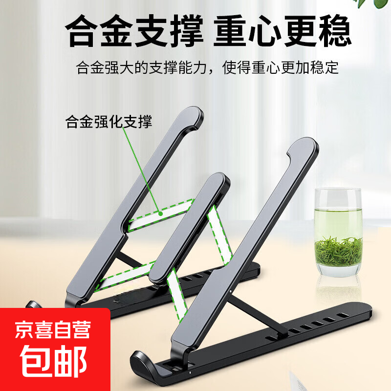 【JD快递】笔记本电脑支架便携折叠铝合金悬空升降散热器平板支架立式增高架 黑色 | (塑料款)加宽加大【电脑通用】