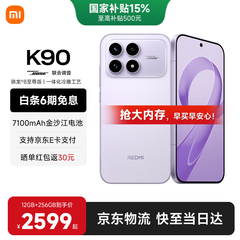 小米(MI)红米k90 国家补贴 骁龙8至尊版 REDMI红米旗舰新品5G小米手机 浅紫色 16GB+1TB 【官方标配】