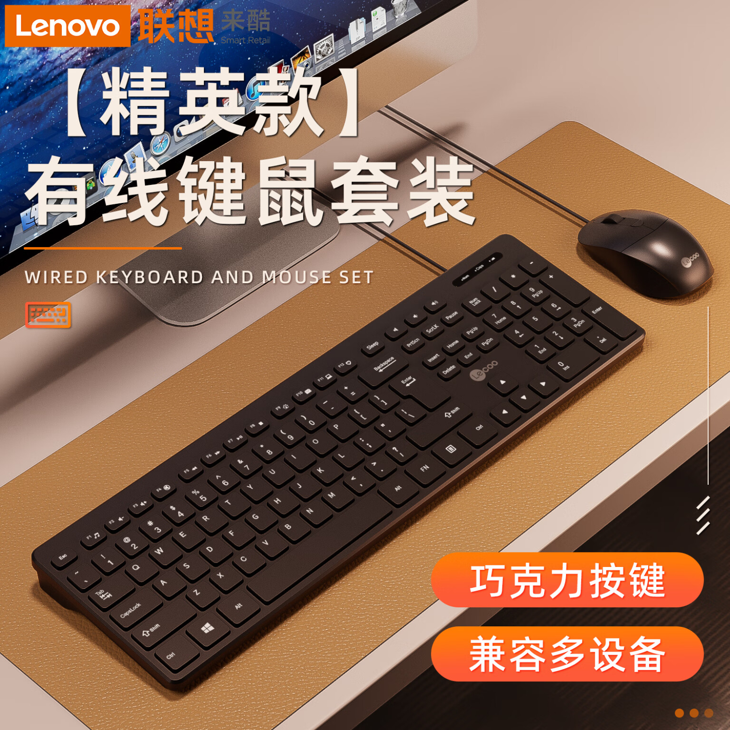 联想(lenovo)键盘鼠标套装 薄膜键盘有无线办公静音办公外接键盘便携 人体工学台式笔记本电脑键盘 旗舰款键鼠套装黑色【有线】