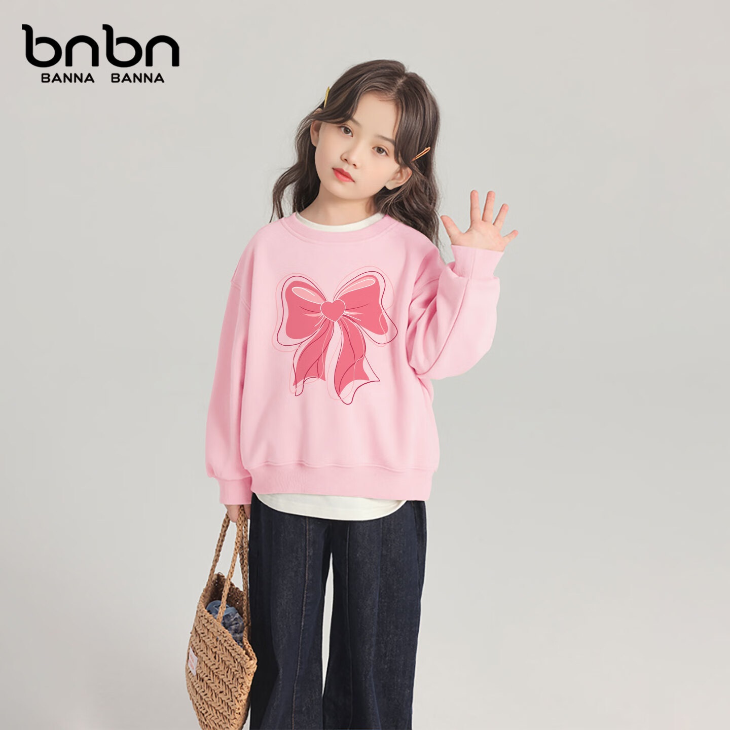 班纳班纳童装儿童卫衣套装2025新款秋季运动潮流宽松女童休闲裤男童上衣 N花结粉 120