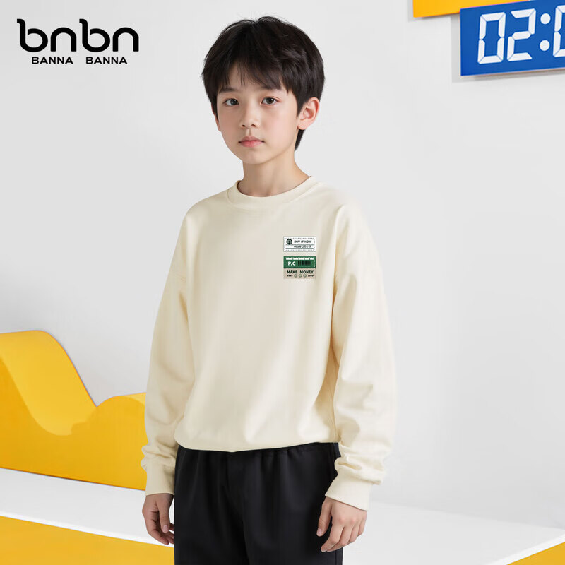 班纳班纳童装儿童卫衣套装2025新款秋季运动潮流宽松女童休闲裤男童上衣 N标签K米白 110