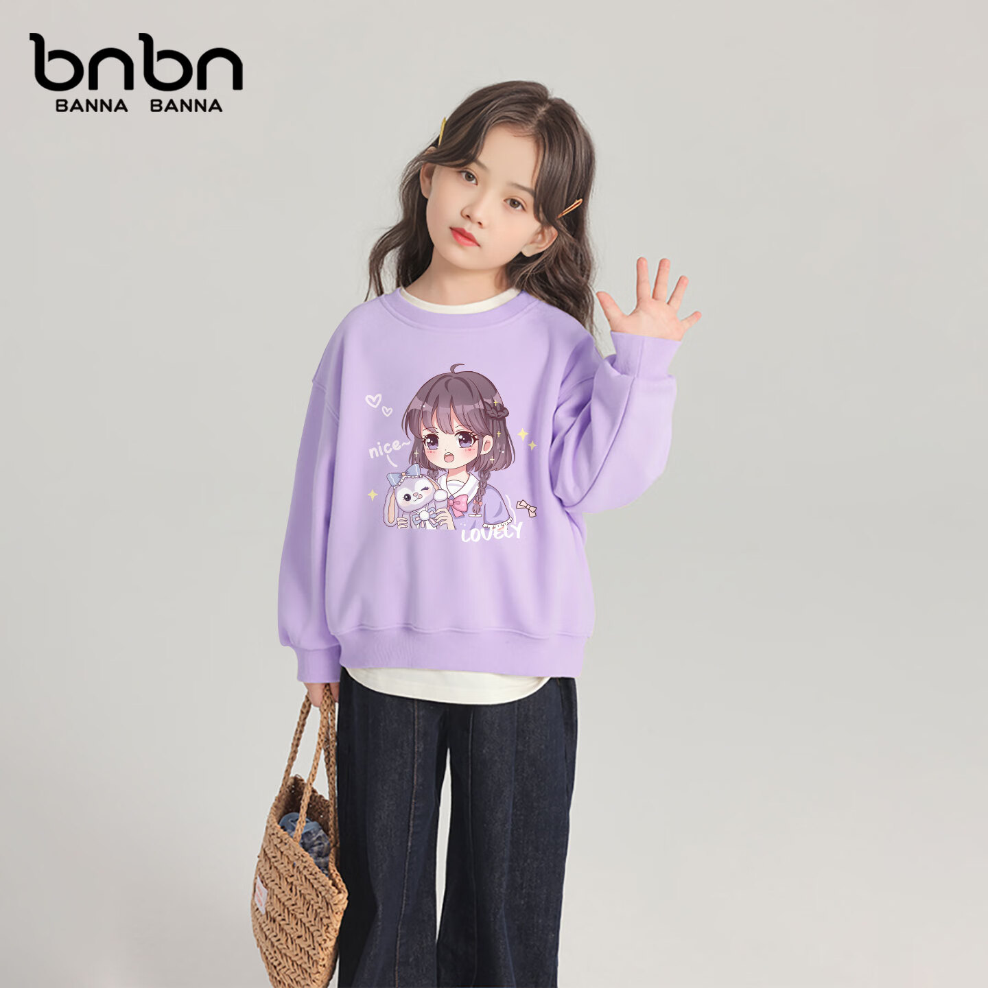 班纳班纳童装儿童卫衣套装2025新款秋季运动潮流宽松女童休闲裤男童上衣 N水母发香芋紫 110