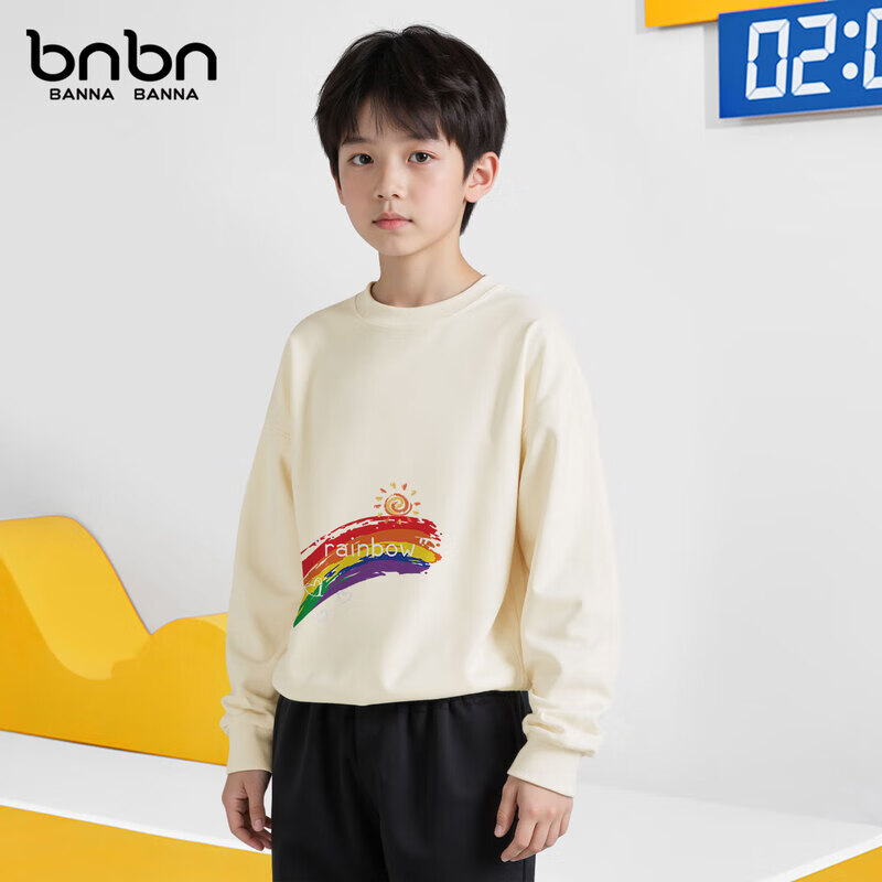 班纳班纳童装儿童卫衣套装2025新款秋季运动潮流宽松女童休闲裤男童上衣 N虹桥_左下米白 110