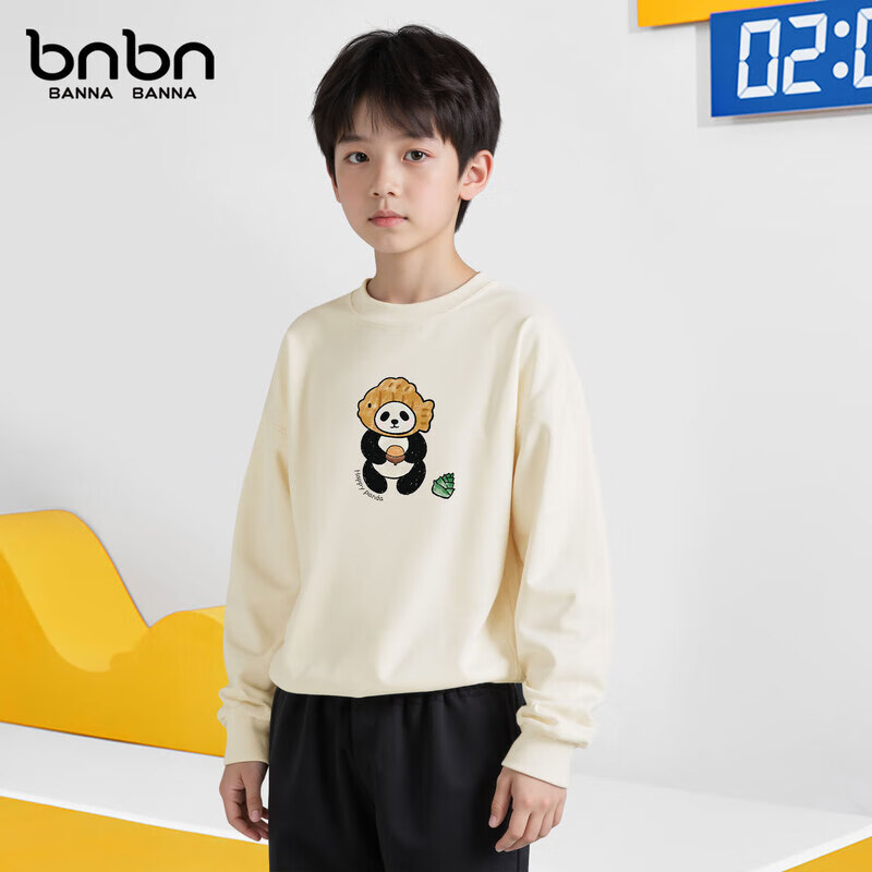 班纳班纳童装儿童卫衣套装2025新款秋季运动潮流宽松女童休闲裤男童上衣 栗熊猫米白 140