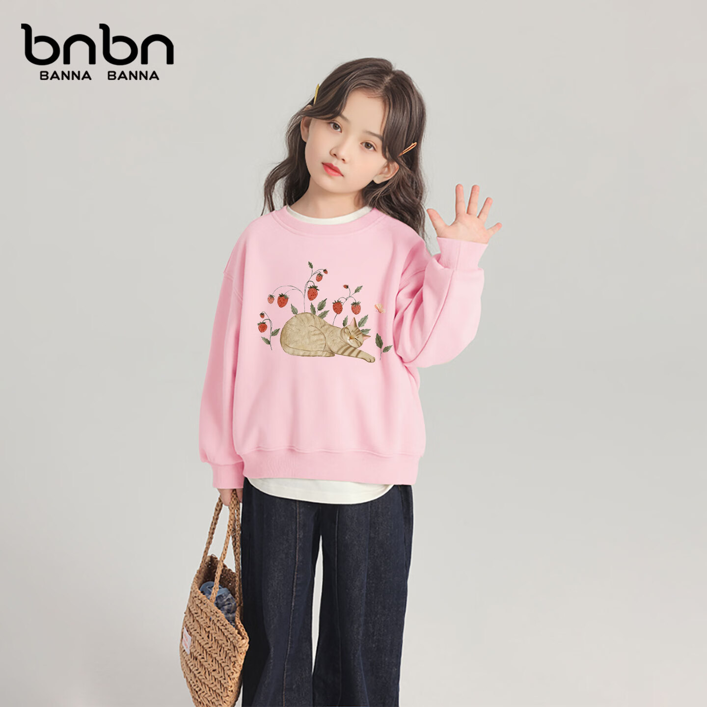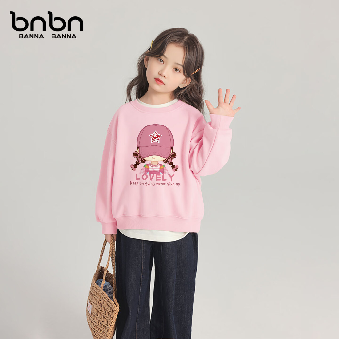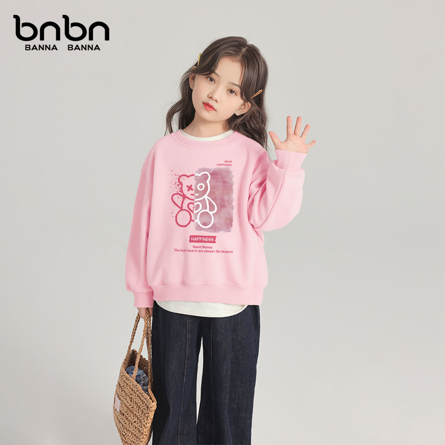 班纳班纳童装儿童卫衣套装2025新款秋季运动潮流宽松女童休闲裤男童上衣 莓猫粉 150