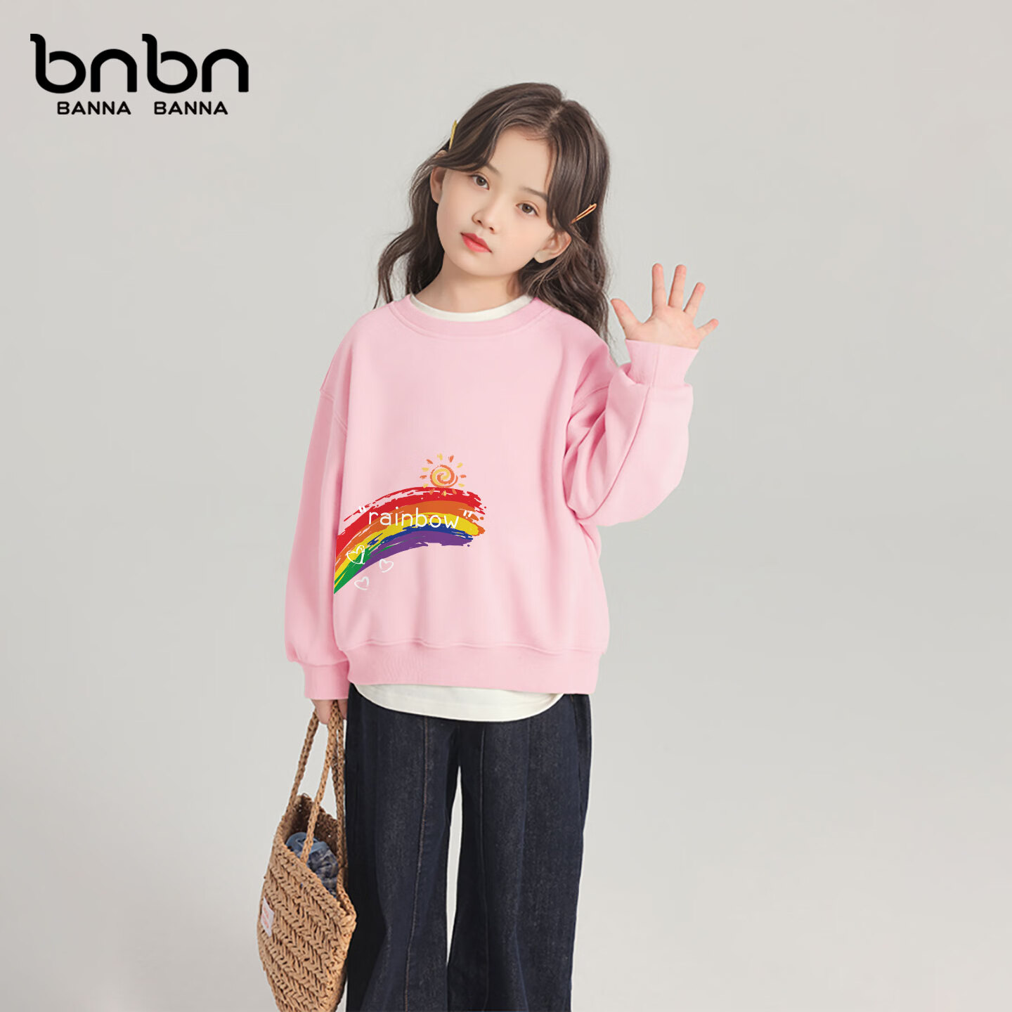 班纳班纳童装儿童卫衣套装2025新款秋季运动潮流宽松女童休闲裤男童上衣 N虹桥_左下粉 140