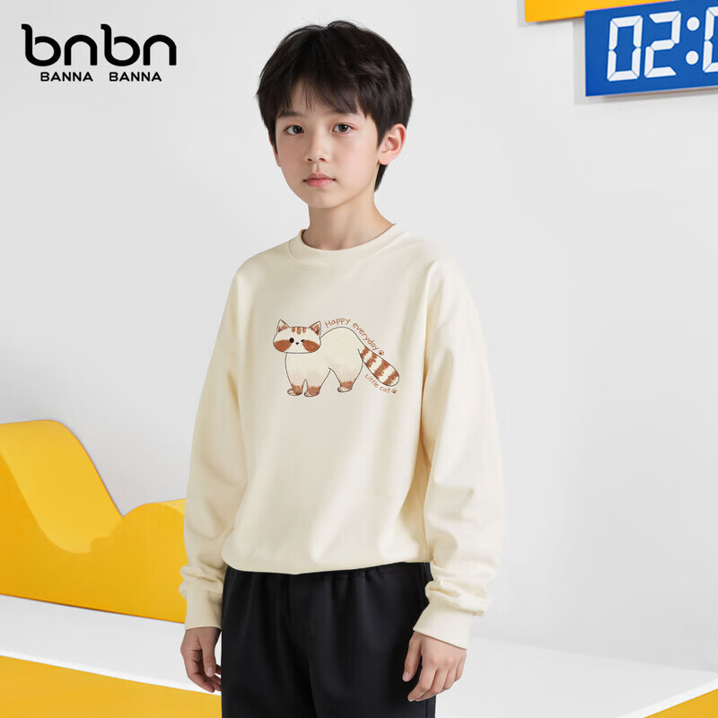 班纳班纳童装儿童卫衣套装2025新款秋季运动潮流宽松女童休闲裤男童上衣 狸花猫米白 150