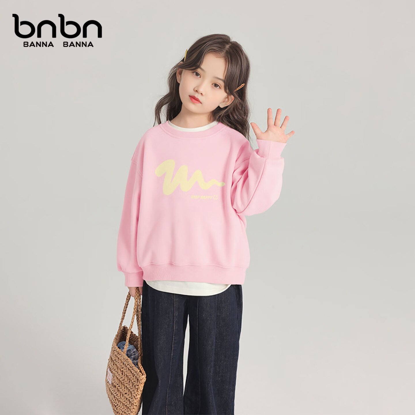 班纳班纳童装儿童卫衣套装2025新款秋季运动潮流宽松女童休闲裤男童上衣 莓猫粉 160
