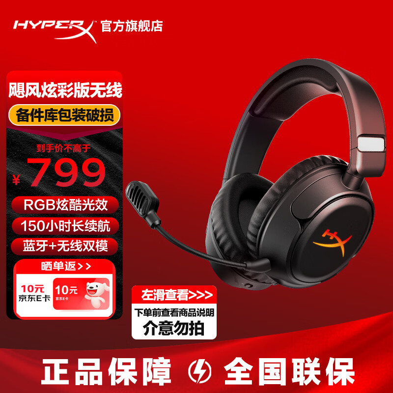 极度未知(HYPERX)【已拆封】飓风2飓风3云雀2阿尔法游戏耳机电竞耳机有线笔记本电脑手机fps吃鸡csgo游戏耳麦 飓风炫彩版无线【备件库包装破损】